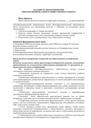 задания на проект общественного здания